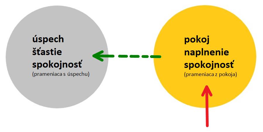 Všimnite si, aký je rozdiel medzi predchádzajúcimi dvoma obrázkami. V prvom sa k celkovému naplneniu života ide cez úspech a šťastie. V druhom sa najprv dosiahne naplnenie a pokoj a až potom sa postupuje k úspechu či šťastiu. Dúfam, že sú jasné súvislosti na prvý pohľad.